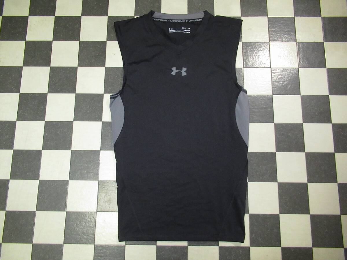 > ★アンダーアーマー★美品 SM メンズ ゴルフ ノースリーブコンプレッションインナー UA HEATGEAR ARMOUR SL V-NECK ブラック