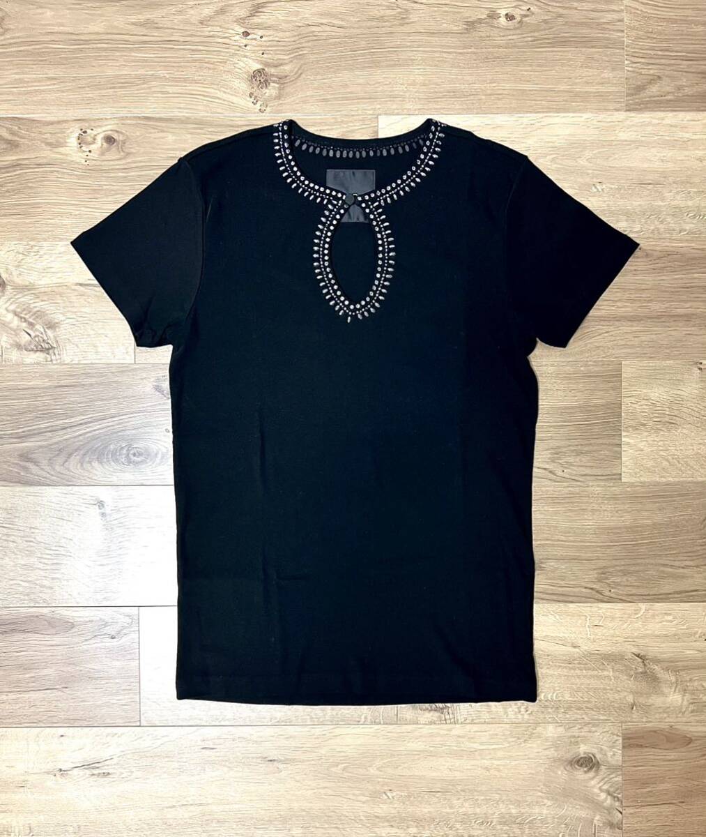 - 価格交渉可 レア 極美品 DRESSCAMP 豪華 スワロフスキー クリスタル 付き T シャツ ブラック サイズ46(サイズ44・48の方も着用可能)