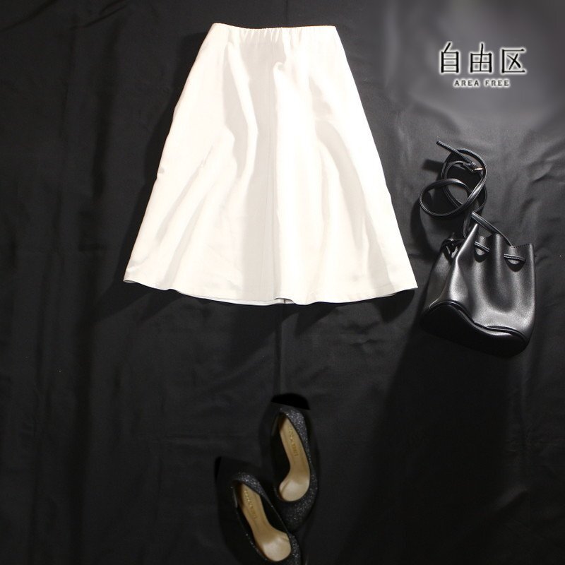 - 美品 ジユウク 自由区 株)オンワード樫山 さらり 上品 ジャージ― 膝下丈 セミフレア スカート サイズ34 ライトグレー 白 ホワイト 5号 7号