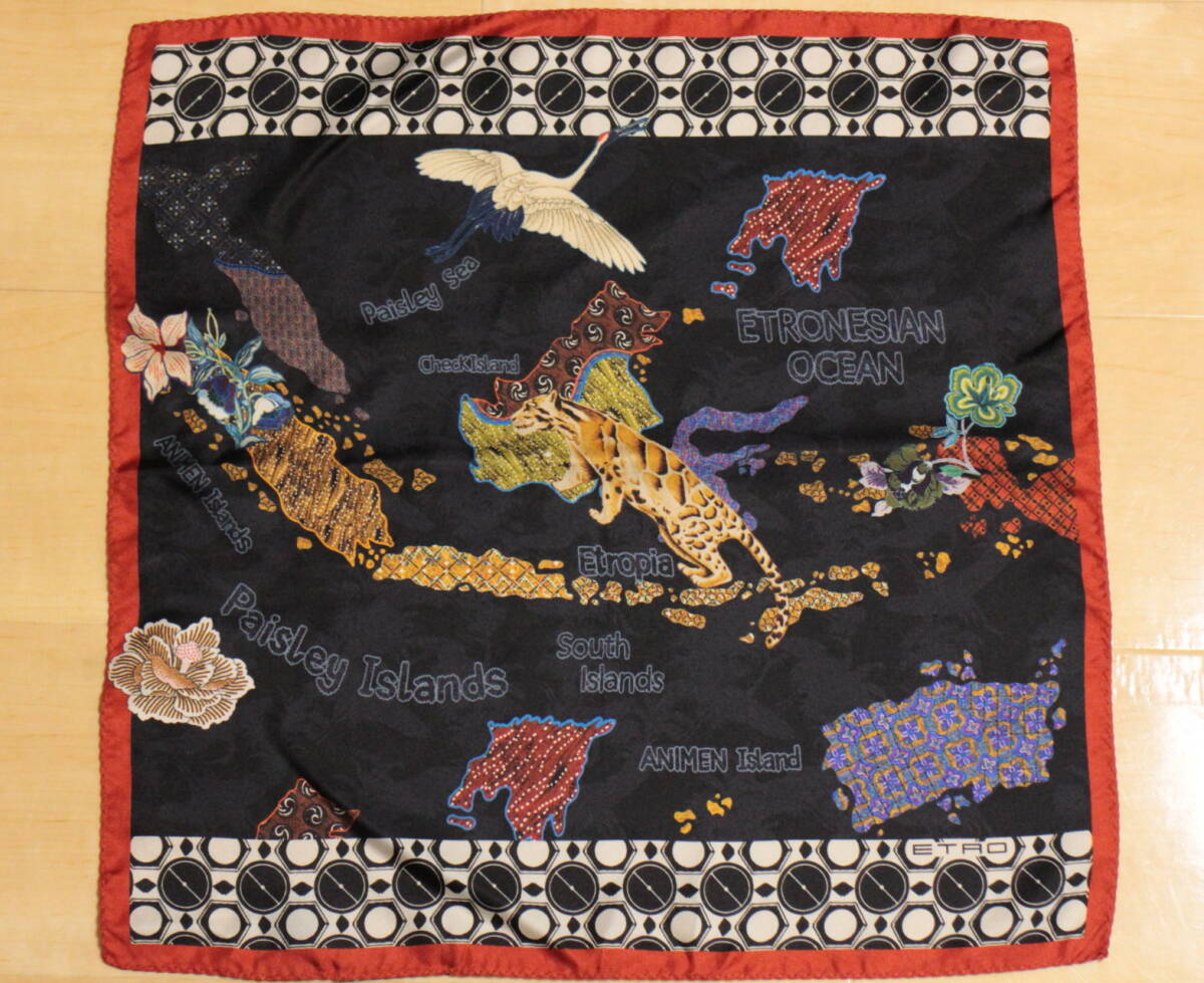 - エトロ新品シルクチーフ華麗アニマル*ボタニカル柄南西諸島マップモチーフ豹鶴ハイビスカスペイズリー柄マルチカラーハンドメイド