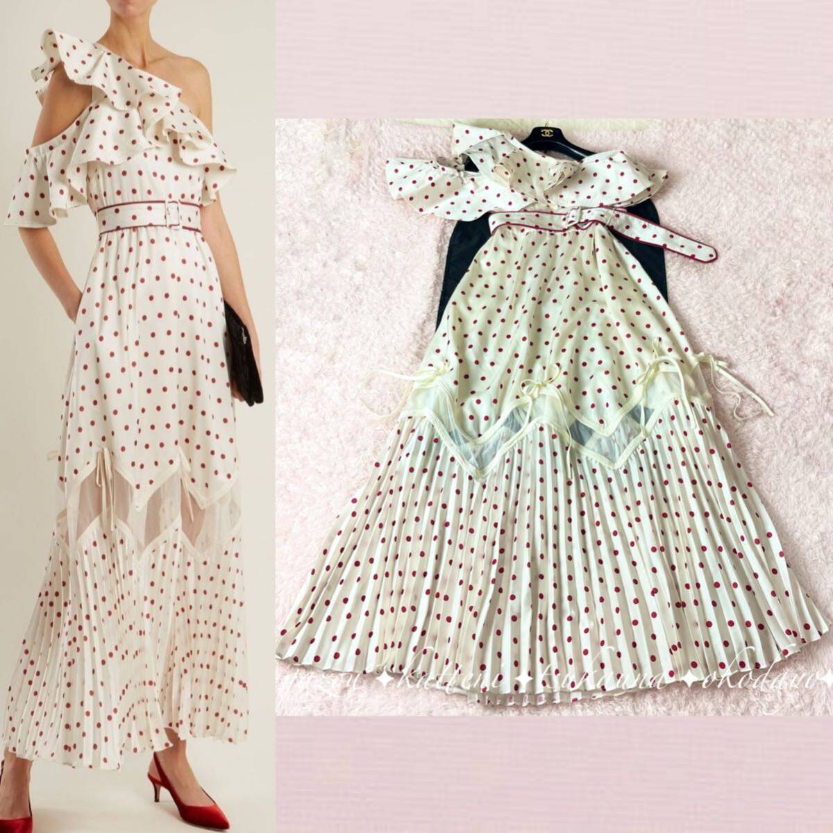 > self-portrait セルフポートレート セルフポートレイト ドットワンショルダーマキシドレス ロングワンピース フリル リボン プリーツ 8