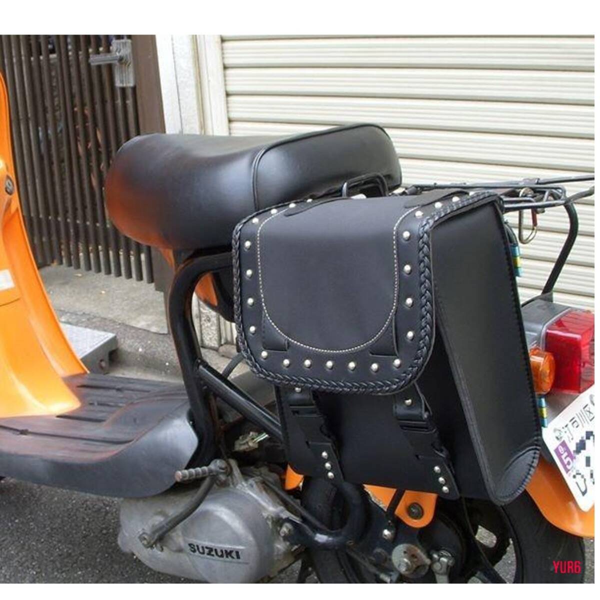 > スタッズがお洒落 サイドバッグ ツーリング バイク バイカー 簡単取付 収納 レザー ヴィンテージ感 ブラック 耐久性 小物入れ ツール入れ