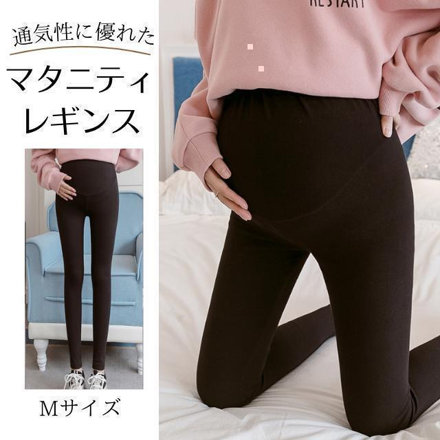 - マタニティ レギンス Mサイズ 春夏秋 部屋着 綿 スパッツ 妊婦 ブラック 黒