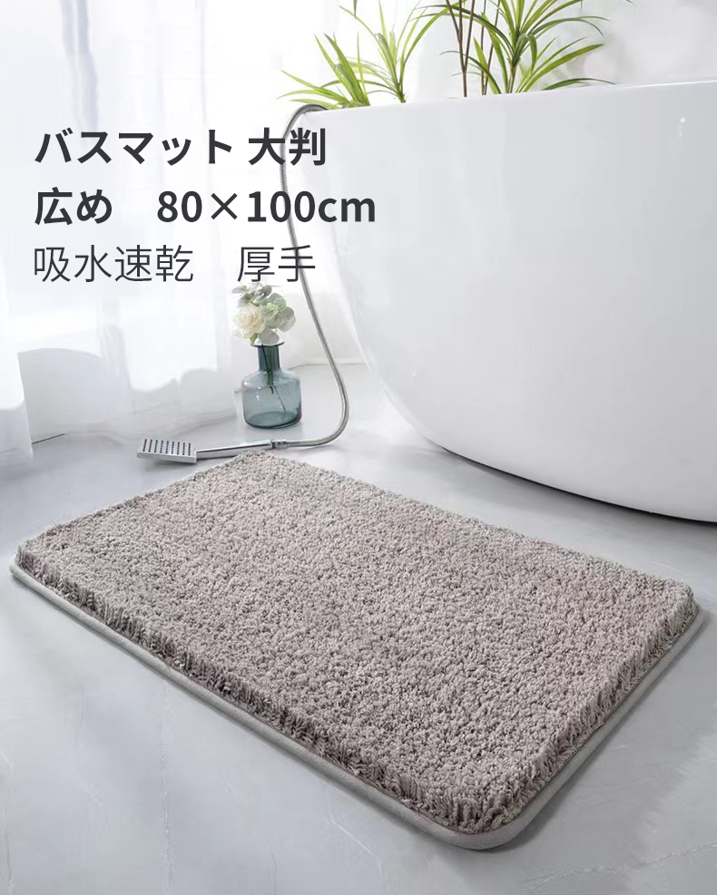 - バスマット 80×100cm 吸水速乾 大判 広め 足拭きマット マイクロファイバー 滑り止め 丸洗い 毛足が長い 厚手 ふわふわ グレー