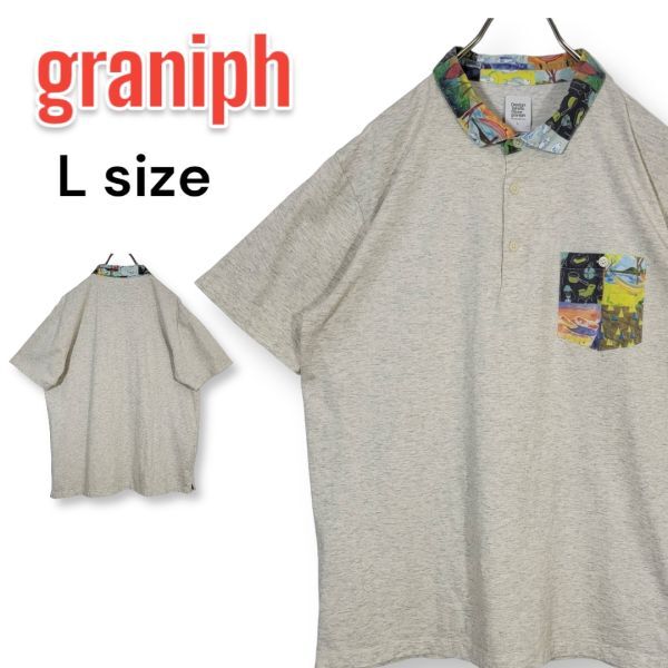 - graniph グラニフ 半袖ポロシャツ Lサイズ グレー ポケット付き アウトドア生地切り替えし