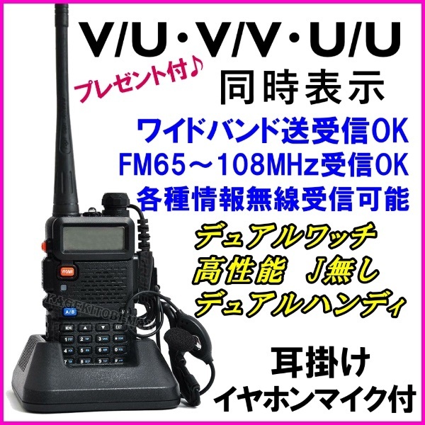 > 耳掛けイヤホンマイクセット /同時表示&デュアルワッチ♪高機能 J無し デュアルハンディ /防水パック付 ワイド送受信機能搭載 無線機 新品