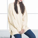 > ◆新品 未使用 サイドスリットチュニックトップス ホワイト 長袖 ロング 上着 トレーナー ゆったり ブラウス 体型カバー Mサイズ