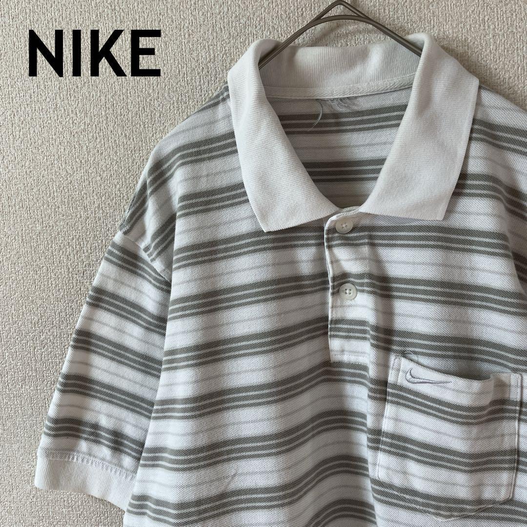 - R1 NIKE ボーダー ポロシャツ 半袖 鹿の子 Lメンズ 白