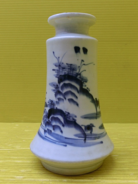 - 送料無料◆中国美術◆染付花瓶◆花器◆一輪差◆山水図