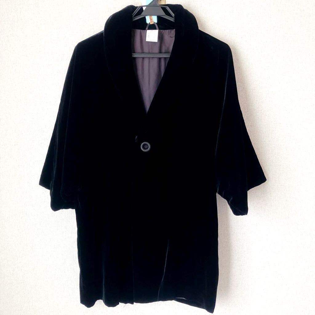 - j98)ベルベット 和装コート 礼装 道行き ブラック 黒 和装 着物 防寒 コート