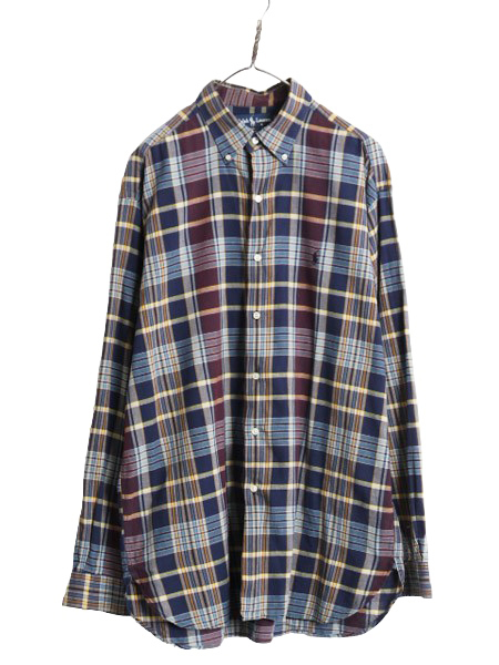 > 90s ラルフローレン チェック 3点留め 長袖 ボタンダウン シャツ メンズ L 古着 90年代 オールド ポロ 長袖シャツ マルチカラー ワイシャツ