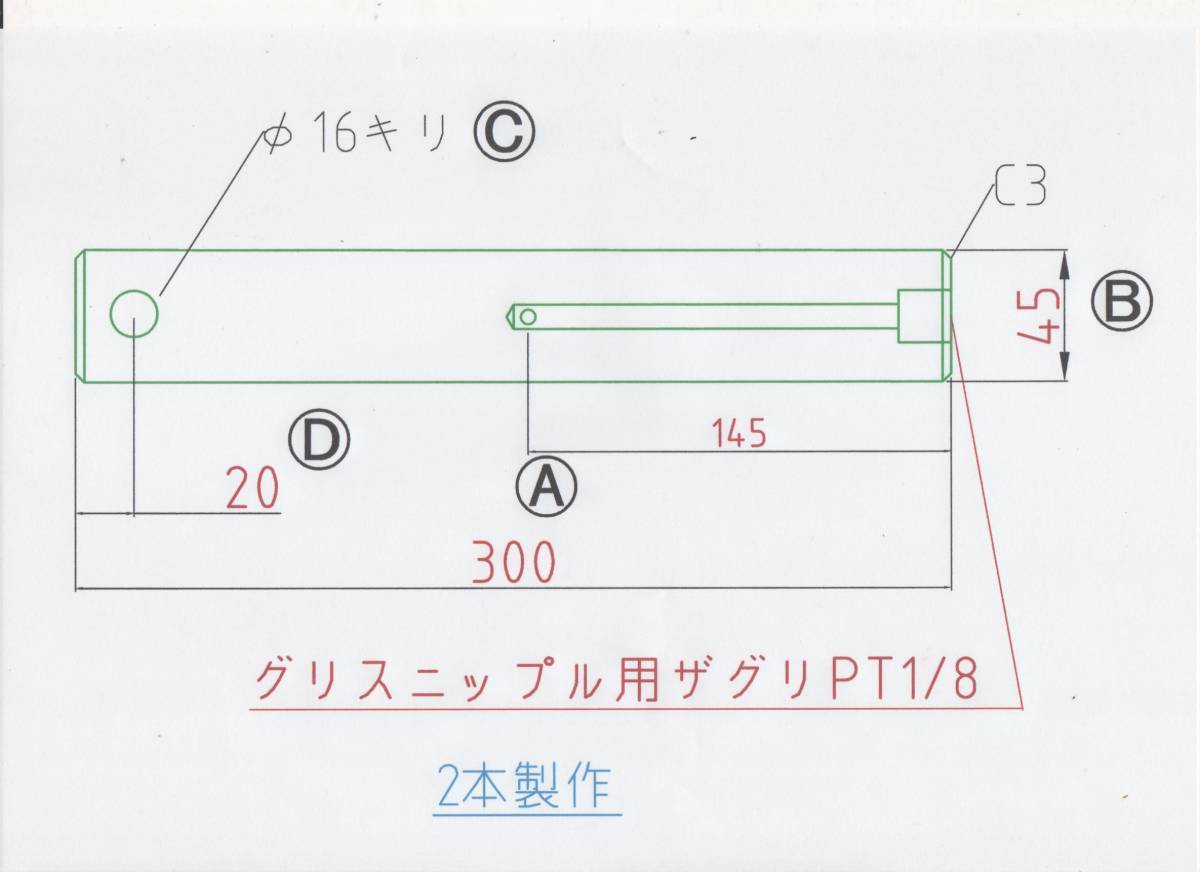 - NO500 Φ45用 全長300mm グリス穴付きバケットピン2本 1セット