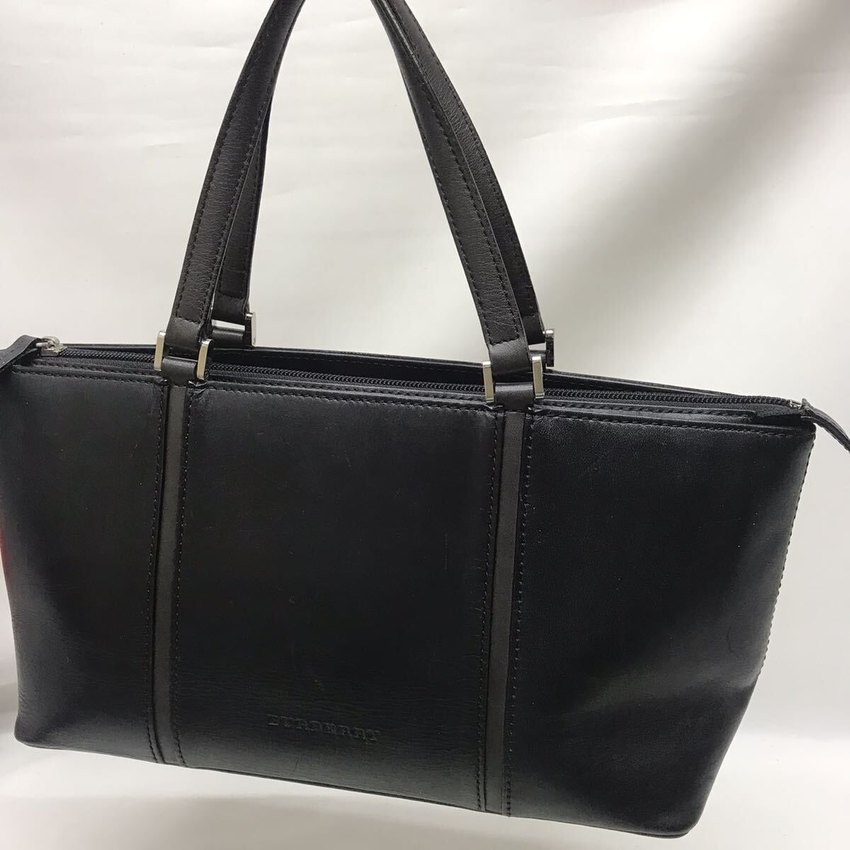 > 【美品】バーバリー BURBERRY オールレザー 本革 ブラック 黒 ハンドバッグ 横長 ノバチェック