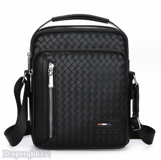 - ショルダーバッグ☆新品 レザー編み込み 大容量 メンズ 斜め掛けバッグ ボディバッグ シンプル 紳士 かばん 革鞄 男女兼用 /黒