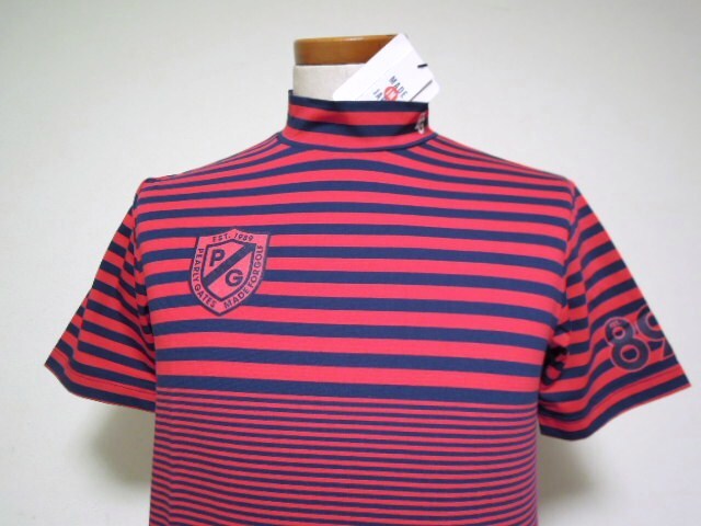 > PEARLYGATES●パーリーゲイツ●PG●SOLDE FENDER●機能素材●ストレッチ●ボーダー柄●モックウエアー●赤紺●サイズ④●未使用●正規品