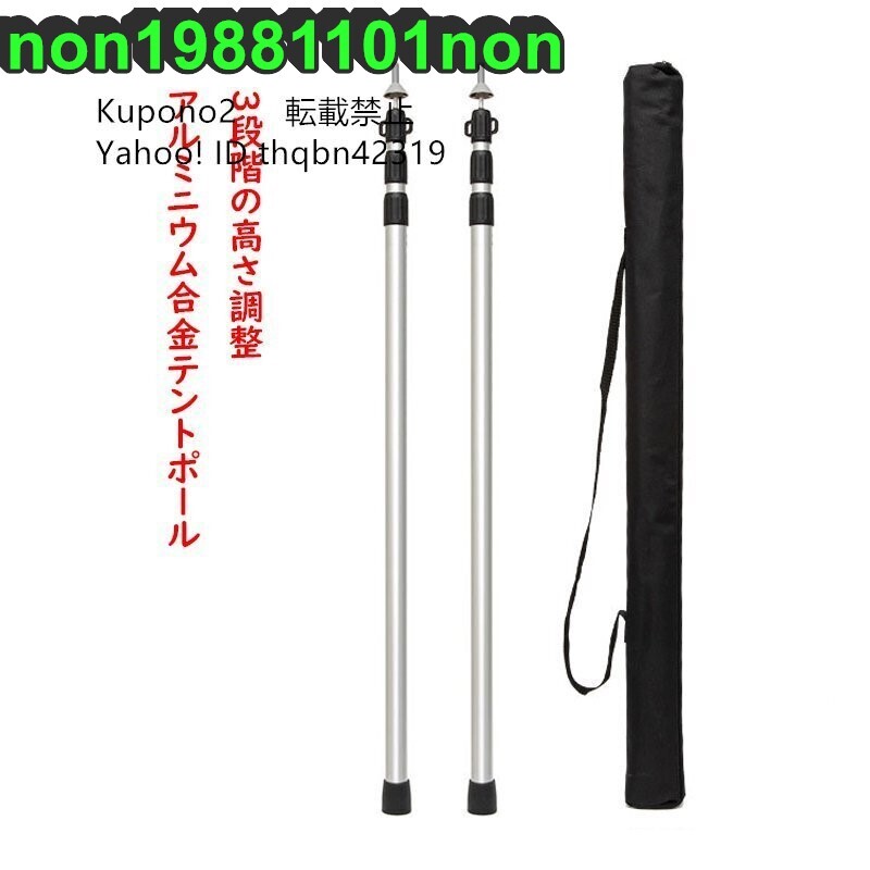 - 強力推薦★ テントポール アルミ製テントポール タープ 軽量 2本セット 3段階 伸縮式 直径28mm 収納バッグ付き キャップ レジャー シル