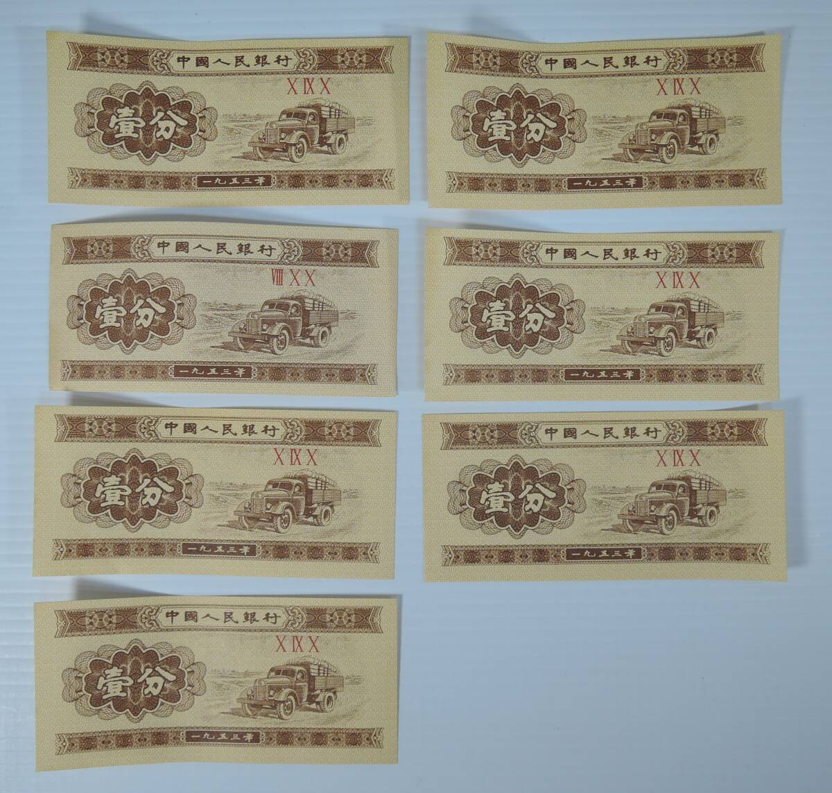 - ☆01G■中国紙幣 中国人民銀行 1953年 壹分 7枚■