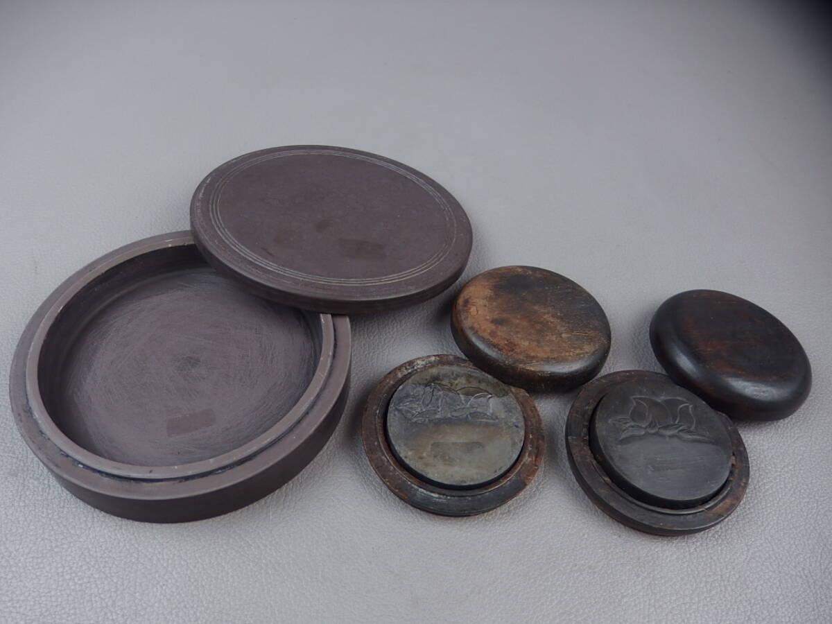 - 【骨董・書道具】★中国古玩★★丸硯 3点 まとめて 文房具 fn093wb.7 端渓硯