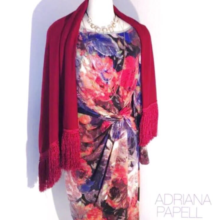 - アドリアナパペル ダークグレー×レッドペイントフラワーワンピース 花柄 厚手 秋冬 M