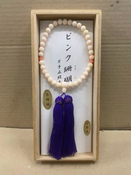 - お希少念珠 ピンク珊瑚 片手正絹房 本珊瑚 女性用