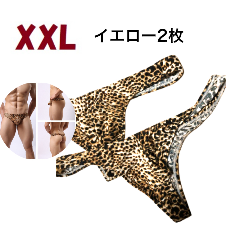 > 新品値下げ 送料 無料 ●メンズTバックショーツ ヒョウ柄 2枚セット【イエロー XXL 大きなサイズ 2枚】 パンサー セクシー