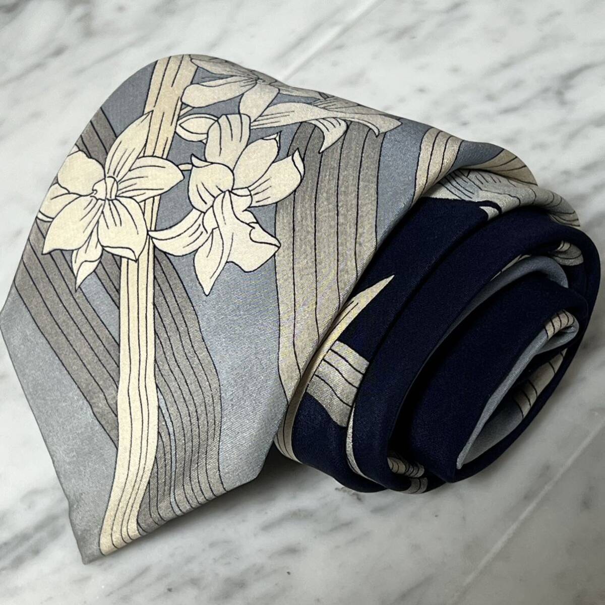 - 999円~ LEONARD ネクタイ ブルー ネイビー 花柄 プリント柄 (B3)