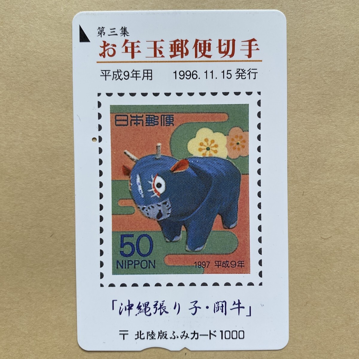 - 【使用済】 ふみカード 北陸版 第三集 お年玉郵便切手 平成9年用 1996.11.15発行 「沖縄張り子・闘牛」
