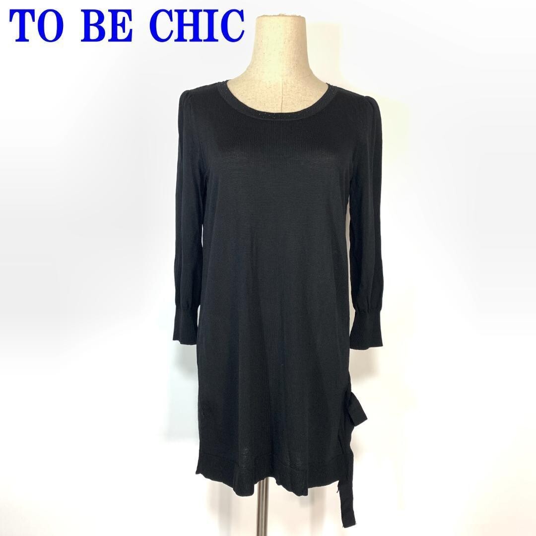 - トゥービーシック 七分袖ニット チュニック ビジューTO BE CHIC カットソー ブラック リボン 黒 Ⅱ C1066