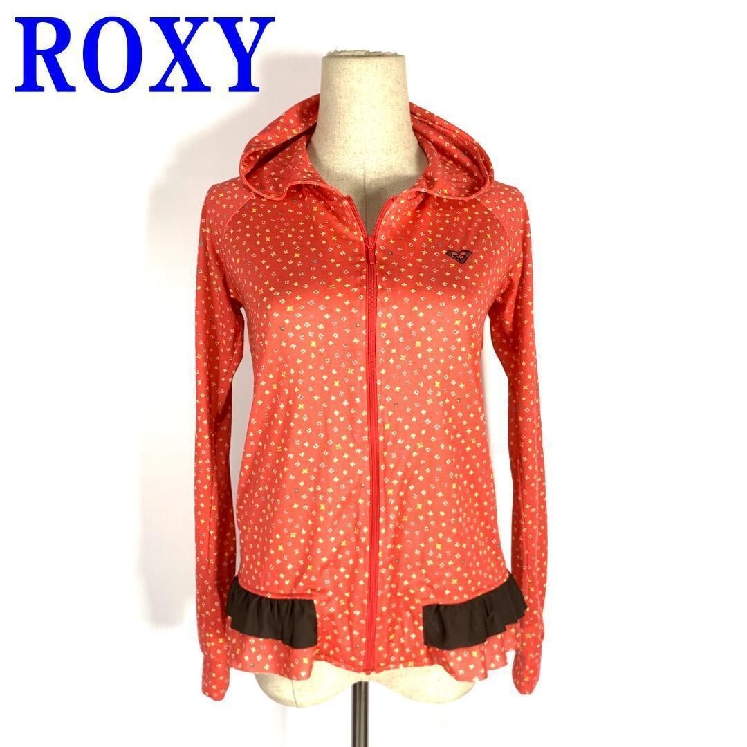 - ロキシー ジップパーカー フード付き フリル 総柄 ROXYオレンジ M C953