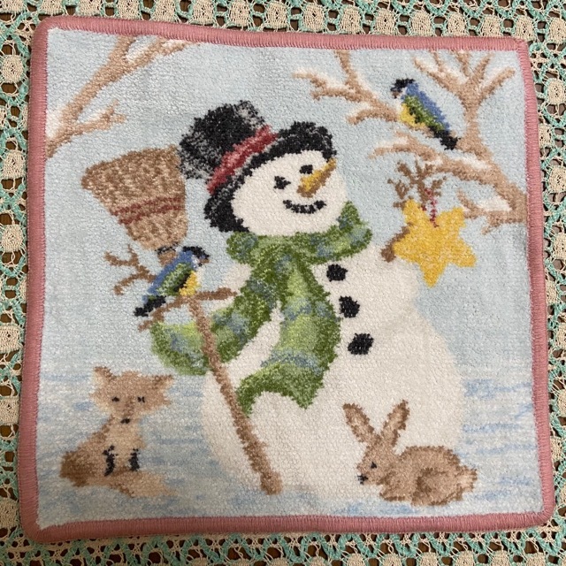 - ◆新品 フェイラー FEILER タオルハンカチ ウィンター 雪だるまと鳥 ほうき スノーマン ピンク シュニール織