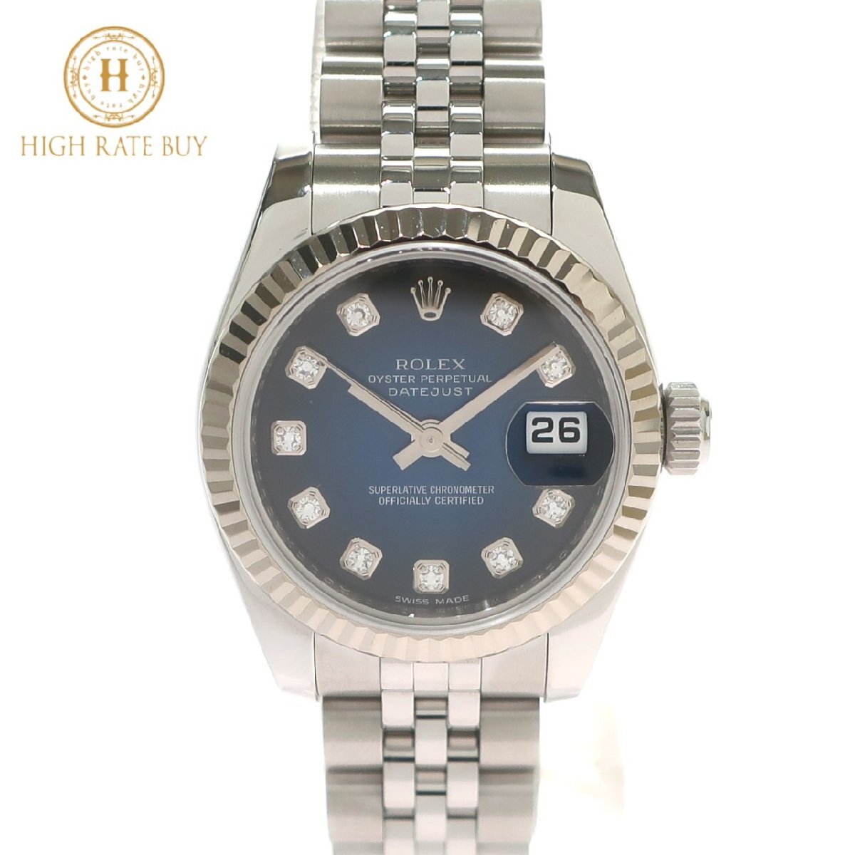 > 【新品同様】ROLEX ロレックス デイトジャスト 179174G ランダム番 10P ダイヤモンド K18WG 750 SS ブルー グラデーション 青文字盤 腕時計