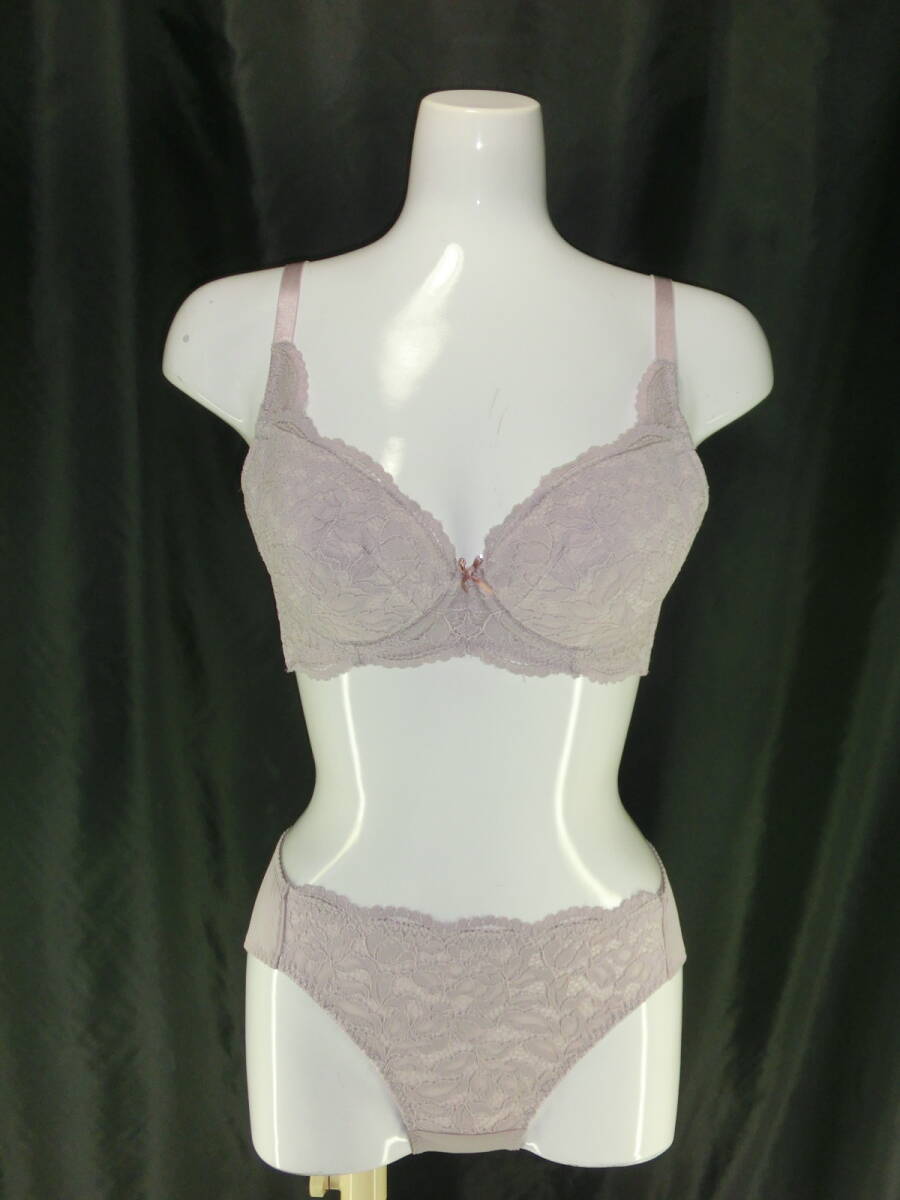 > ☆【C80 L】グレイッシュパープル リッチメイク脇高ブラジャーショーツセット(ボタニカル編レース) 《38-8》
