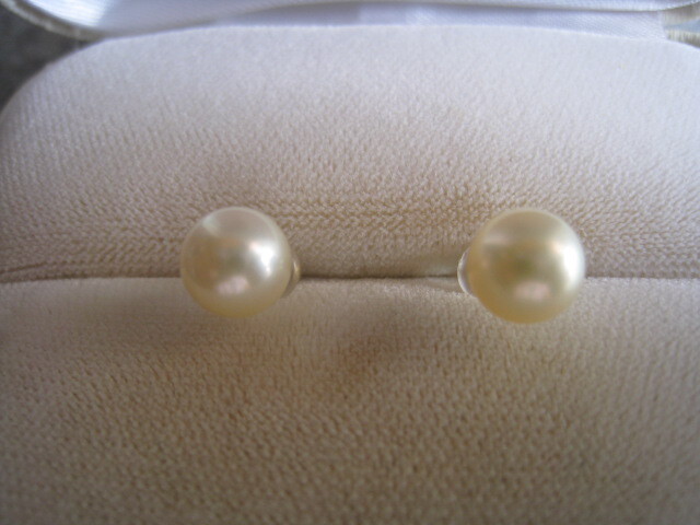 - [SAMU]素敵!!照り天然あこや真珠7.0mmUP k18金イエローゴールドピアス★美品!