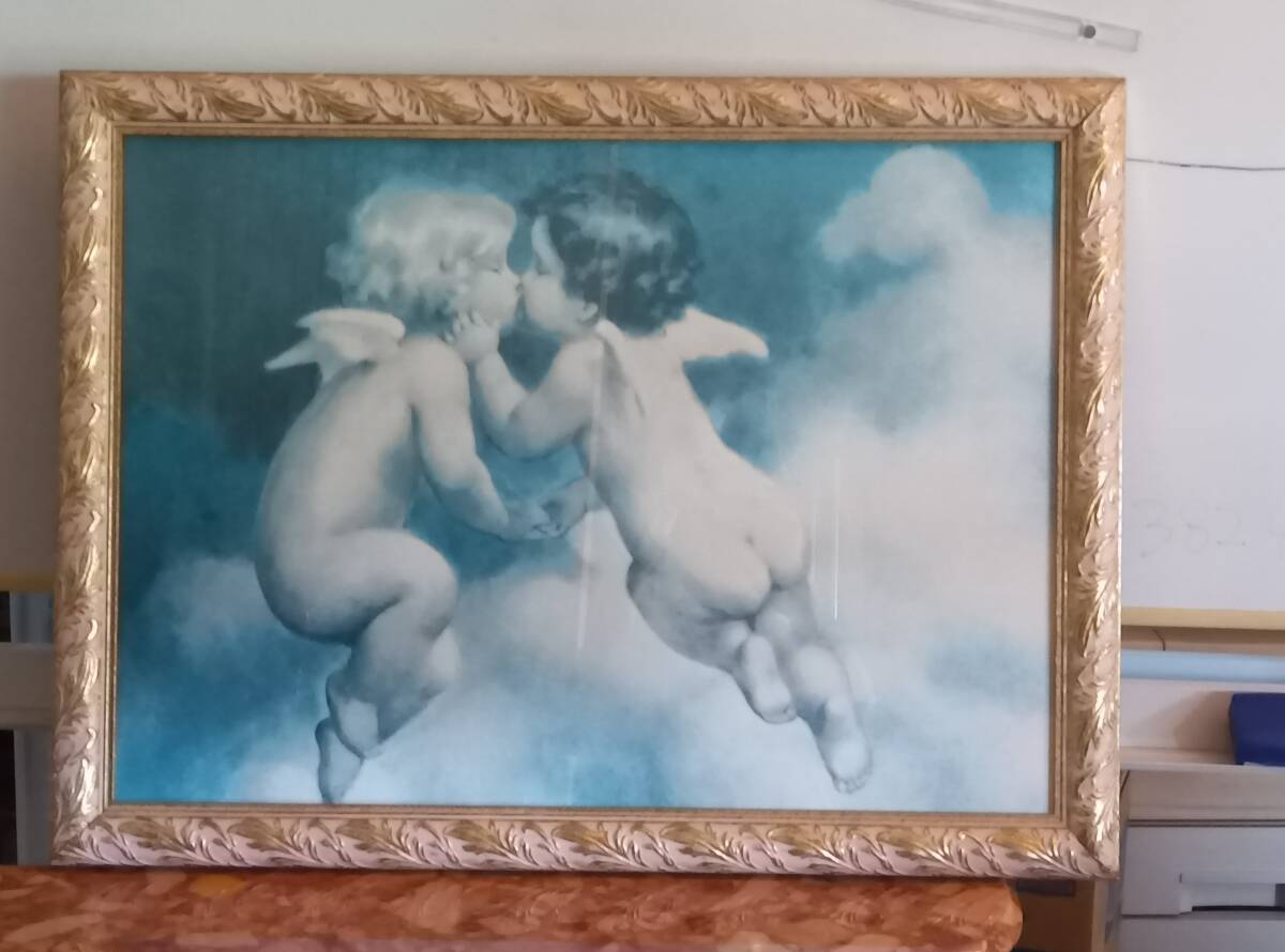 - 24090103 天使の絵 金縁 アンティーク風 絵画 2人の天使 空と天使
