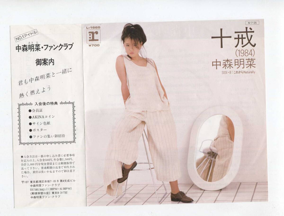 - 【EP レコード シングル 同梱歓迎】 中森明菜 ■ 十戒 1984 ■ 売野雅勇 高中正義 萩田光雄 L-1665 ■ これからNATURALLY