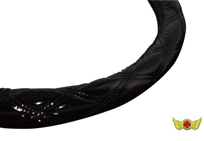 - トラック用品 即納 ハンドルカバー ダブルステッチ エナメル ブラック/ブラック 2HS(45cm-46cm)/日野 グランドプロフィア【送料800円】