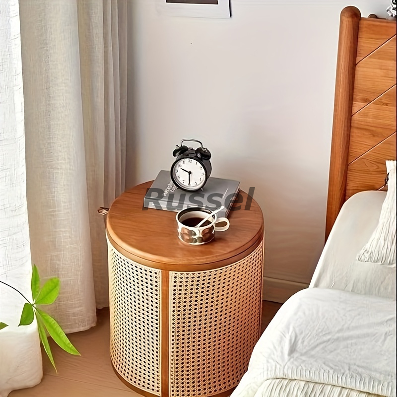 - サイドテーブル ラタン 収納 かわいい おしゃれ インテリア 北欧 机 コーヒーテーブル 円形 ミニ ベッドサイド ナチュラル シンプル