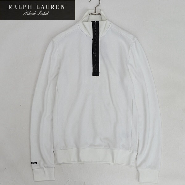 - ◆RALPH LAUREN BLACK LABEL ラルフローレン ブラックレーベル ハーフジップ コットン 裏毛 スウェット トレーナー ホワイト×ブラック M