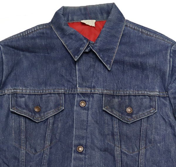 > DJ25デニムジャケットUNKNOWN古着アメリカ製トラッカージャットGジャン40中綿入りナイロンキルテング裏地ユニオンチケット付きオールド
