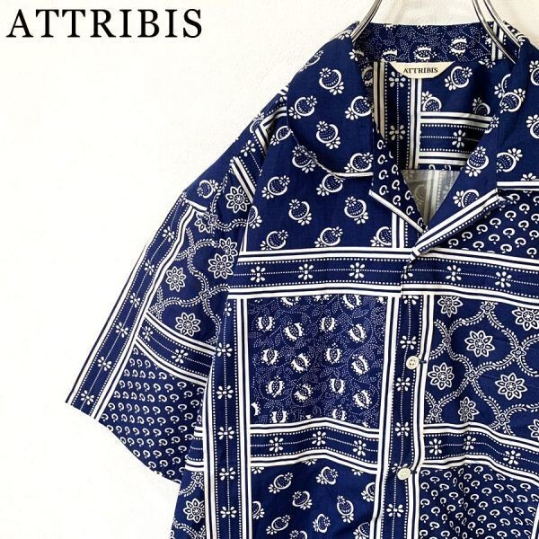 - [KWT941] ATTRIBIS 半袖シャツ ネイビー×ホワイト M メンズ ポス