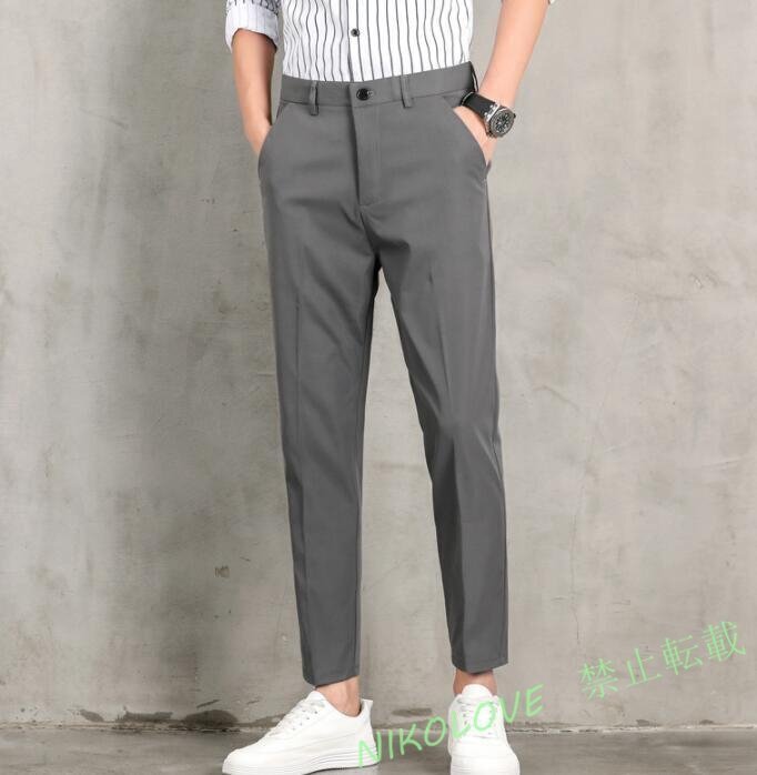 - 新品 パンツ メンズ チノパンツ 夏薄めパンツ ストレッチ スリム ボトムス カジュアルパンツ ズボン【6066】ダークグレー W32 LF860