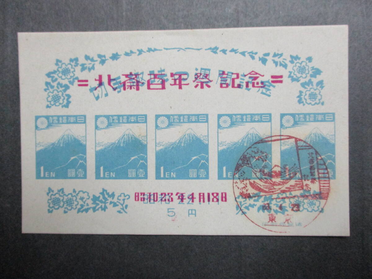 - ★1948年発行 北斎100年小型シート(記念印入り)1枚★
