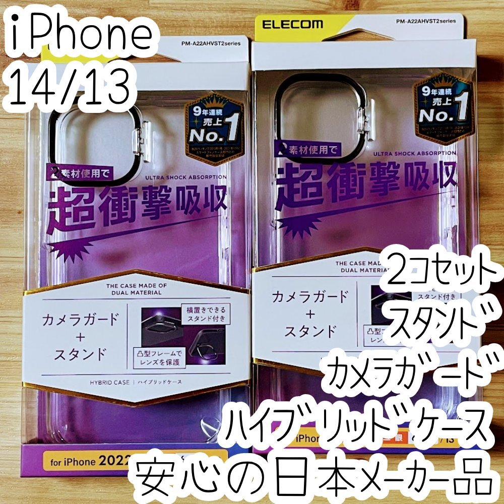 - 2個 iPhone 14 13 ケース カバー ハイブリッド クリア スタンド機能付き 側面TPU エアクッション採用 カメラレンズ保護設計 645