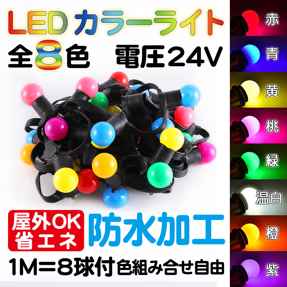 > ★新品★送料無料★ LEDカラーライト バンド1M+8個電球付き 1M単位販売 LED電球 E27 24V イルミネーション カラフル