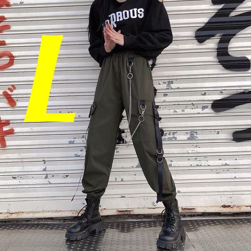 > ジョガーパンツ テーパードパンツ チェーン ストリート カーゴパンツ トレンド 好評 オルチャン ユニセックス 男女兼用 カーキ 緑 M