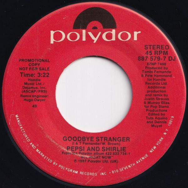 > Pepsi And Shirlie Goodbye Stranger Polydor US 887 579-7 DJ 207657 SOUL DISCO ソウル ディスコ レコード 7インチ 45