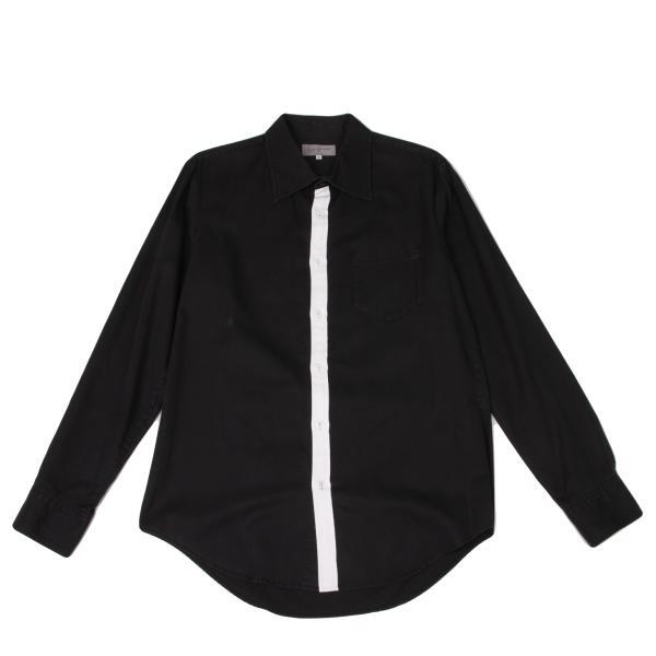 > ヨウジヤマモト プールオムYohji Yamamoto POUR HOMME コットン前立て切替シャツ 黒白2