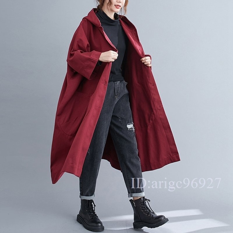 - 秋新作*20304050代カジュアル*ゆったり超大きいサイズ*フード付き*ロング丈トレンチコート F