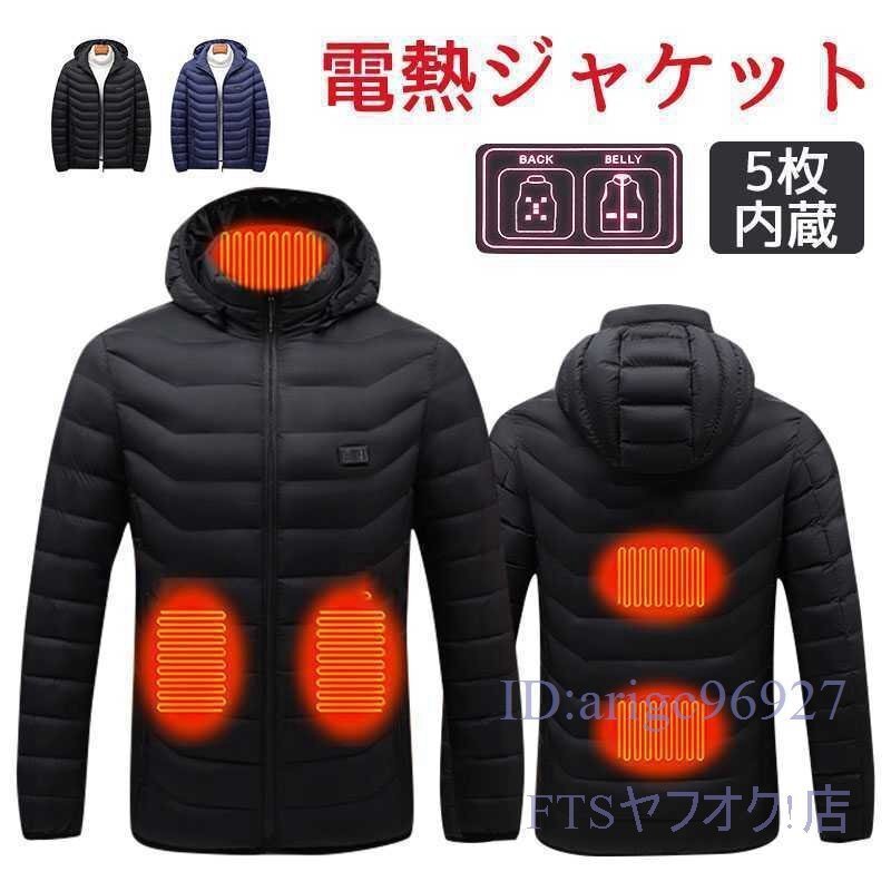 > X162☆加熱ジャケット前後独立温度設定5つヒーターヒーターコート電熱ジャケット ヒータージャケット中綿コートジャケット防寒保温 4XL
