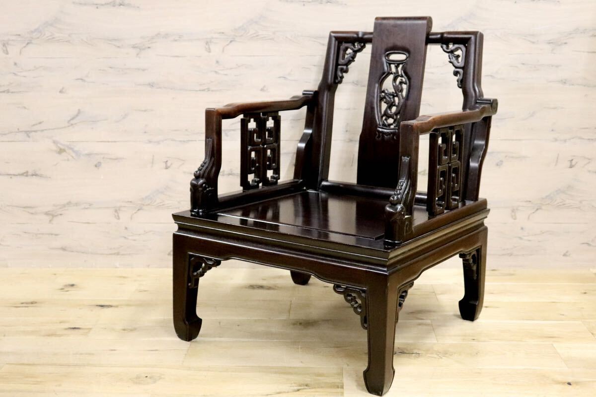 - GMHS297G○中国美術 唐木家具 アームチェア 椅子 無垢材 民藝 最高級 ヴィンテージ アンティーク アジアン